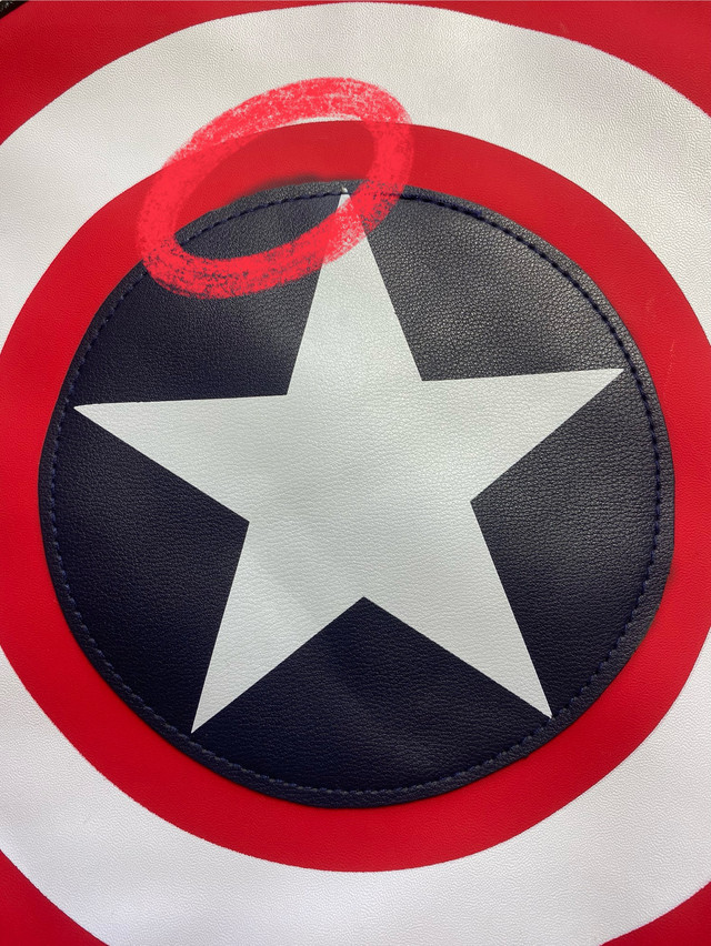 Рюкзак виконаний у вигляді щита супергероя коміксів "Капітан Америка". Неодмінно сподобається фанатам цього персонажа або просто любителям коміксів. Відмінно підходить школярам, студентам і для повсякденного користування.